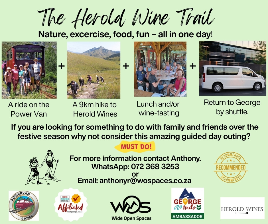Starts at the Outeniqua Railway Museum. A one-hour trip on the Outeniqua Power Van to the top of the Montagu Pass.